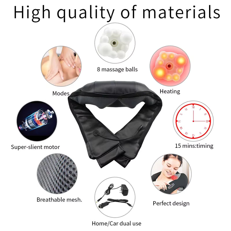 This ergonomic U-shaped massager targets the neck, shoulders, back, legs, and feet with deep-kneading 3D rollers that auto-reverse for balanced comfort. Choose your perfect setting with adjustable intensity and optional heat for a customized massage anytime. Crafted from premium PU leather and breathable fabric, it’s stylish, durable, and designed for daily use. Handy arm straps let you control pressure hands-free, while the included home and car adapters make it easy to relax anywhere. With built-in overheat protection and a 15-minute auto shut-off, you can enjoy safe, worry-free relief every time. Portable and versatile, it’s the perfect gift for anyone seeking comfort, relaxation, and everyday stress relief.